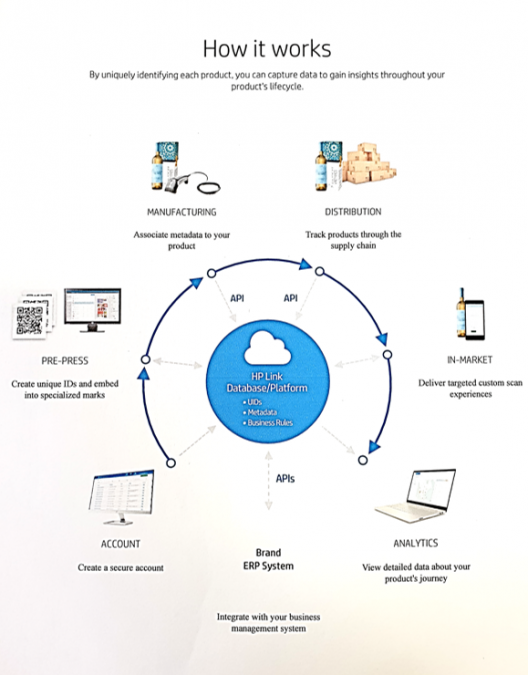 The addition of QR code technology (linkReader by HP) allows for traceability from the Filling plant to the customer with the use of standard free apps for the scanning of QR coding and URL information embedded in the seal. (www.linkcreationsstudio.com)